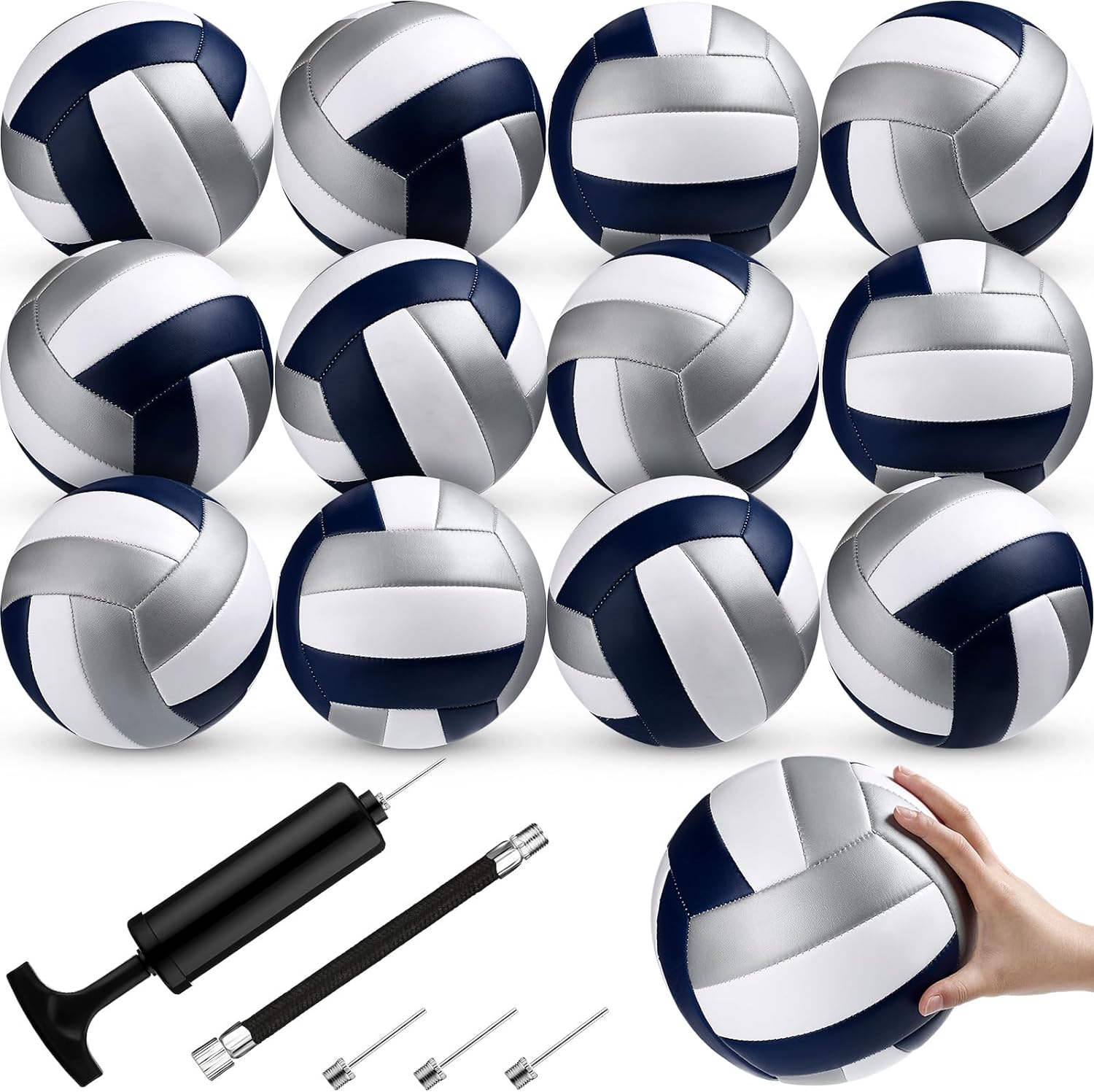 12 Pcs Volleyballs Official Size 5 Volley Balls Bulk Practice Volleyballs Indoor Outdoor Soft Recreational Volleyball with Pump for Beginner Teen for Gym Training Beach Pool