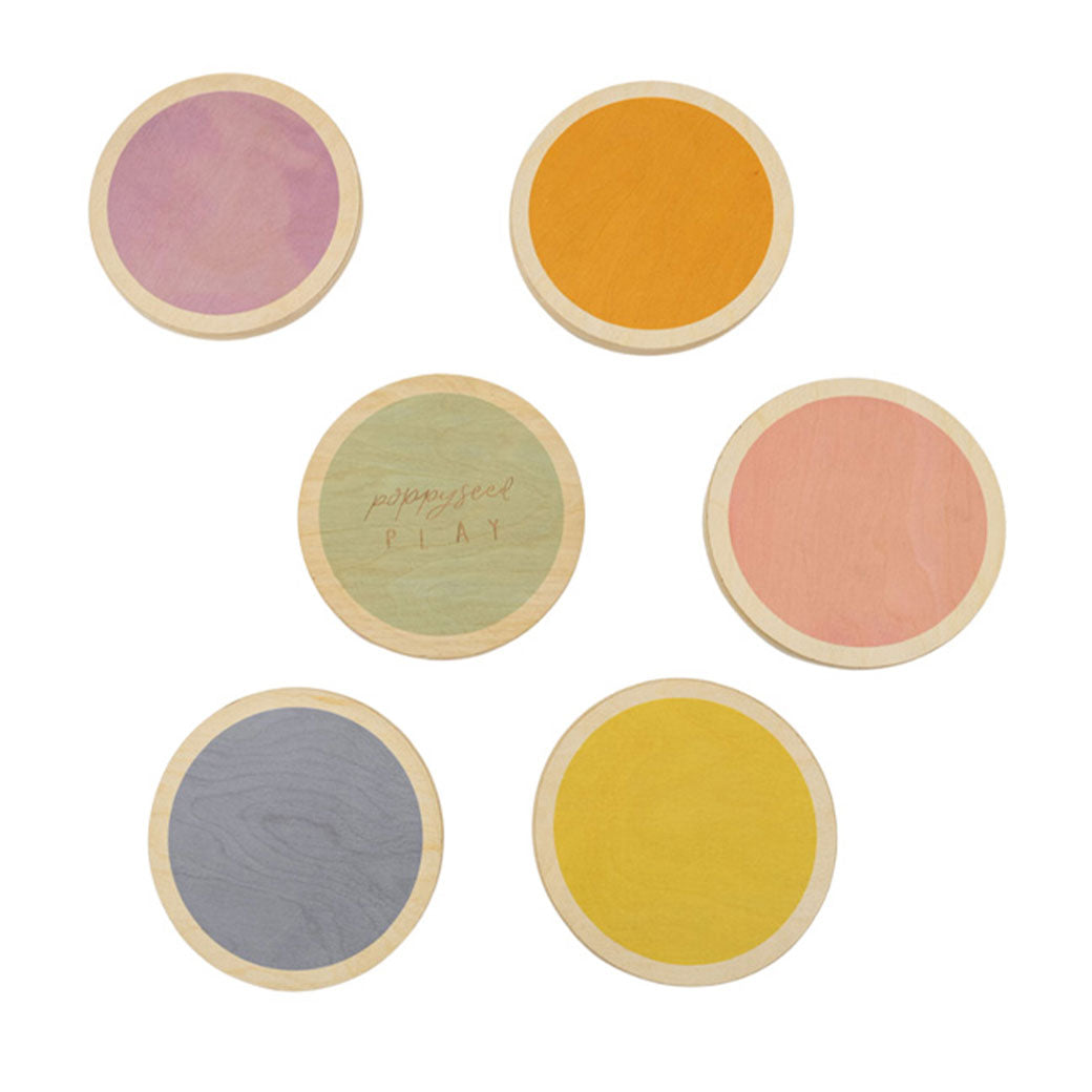 Let your little one jump into a world of imagination and active playtime with the colorful Stepping Stones by Poppyseed Play. The stepping stones encourage their natural instinct for jumping and balancing and help improve their strength, coordination, and motor skills. Made from natural birch wood, the Stepping Stones by Poppyseed Play are sturdy and additionally, every stone features anti-slip felt pads on the back for extra safety. Your little jumper can create paths, and organize the colors. play the floor is lava and hopscotch or create their own games! Perfect for indoor playtime on rainy days, or with many little friends during a birthday party! Pssst, the stepping stones can hold up to 200 lbs so parents can also join the fun!