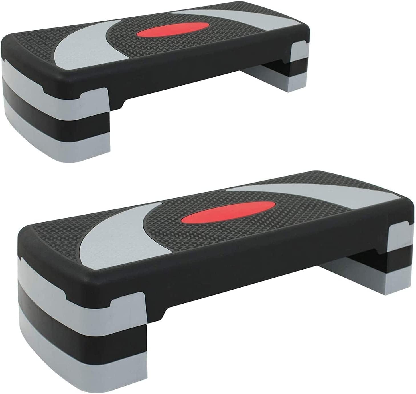 Saicool 30 Inch Fitness Aerobic Exercise Step helps you keep fit, enjoy your aerobic exercises, and create charming body. features 3 levels (4", 6", 8") for different exercise goal, perfect for indoor and outdoor use and comes with a shock absorbing, non-stick and non-slip surface.