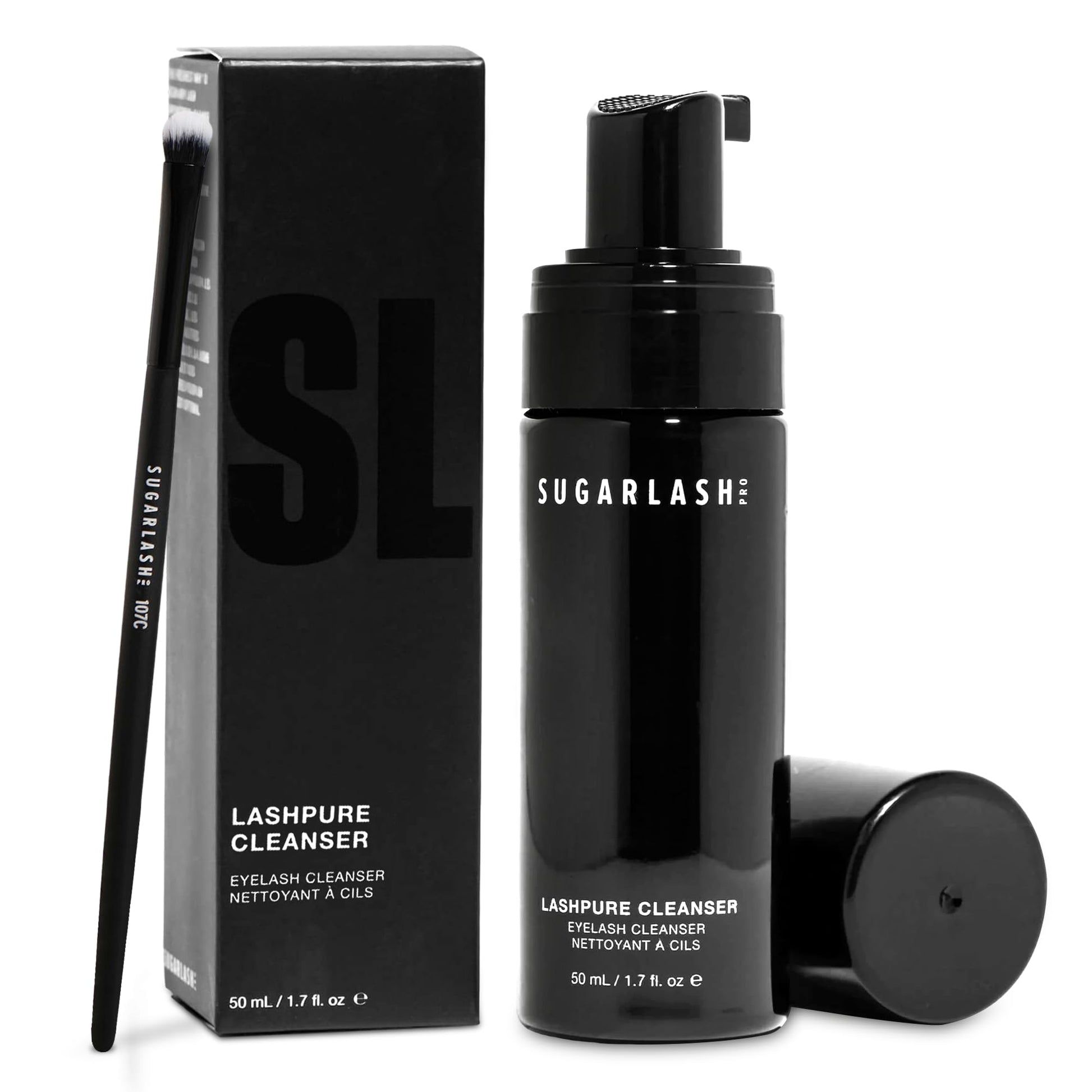 Sugarlash PRO Lashpure Cleanser with Cleansing Brush | Lash Shampoo for Lash Extensions | pH-Balanced & SLS-Free Eyelash Extension Cleanser, Removes Makeup & Oil | 50mL / 1.7 fl. oz