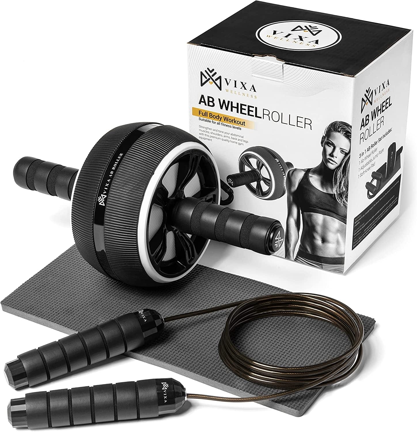 VIXA Ab Roller Wheel 3 in 1 Kit Ab Workout Equipment for Abdominal and Core Strengthening, Ab Machine Home Gym Equipment, Ab Wheel Roller, Jump Rope, Knee Pad with Workout Ebook